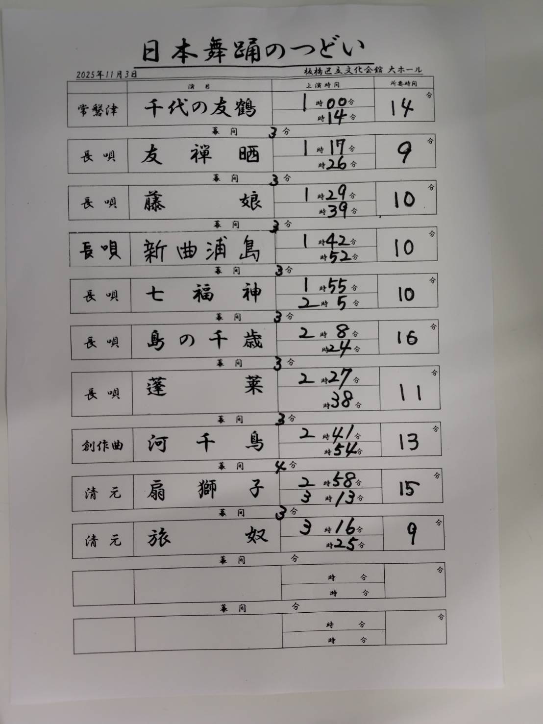 いよいよ11月に入りました。3日は板橋区日本舞踊連盟「日本舞踊のつどい」です